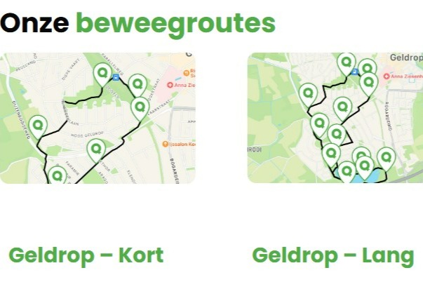 Sinds eind 2023 zijn er mooie beweegroutes aangelegd in Geldrop én Mierlo. Door middel van QR-codes kun je een laagdrempelige route afleggen, waarbij afwisselend diverse oefeningen aan bod komen. Iedere 24 uur wisselen de oefeningen, waardoor het leuk blijft! De QR-fit routes zijn makkelijke en laagdrempelige manieren om gratis te kunnen én blijven bewegen. Je hoeft hier simpelweg alleen een App voor te downloaden op je telefoon.